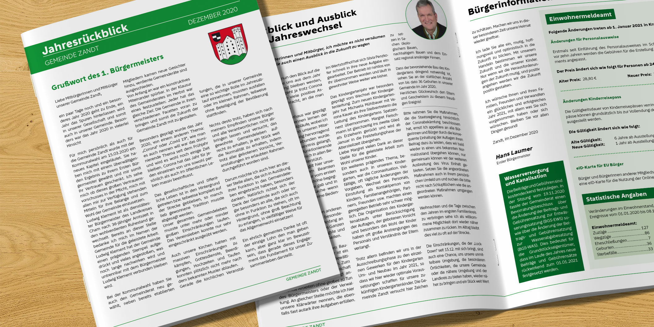 Die Gemeinde Zandt informiert im Gemeinderundbrief über das vergangene Jahr 2020.
