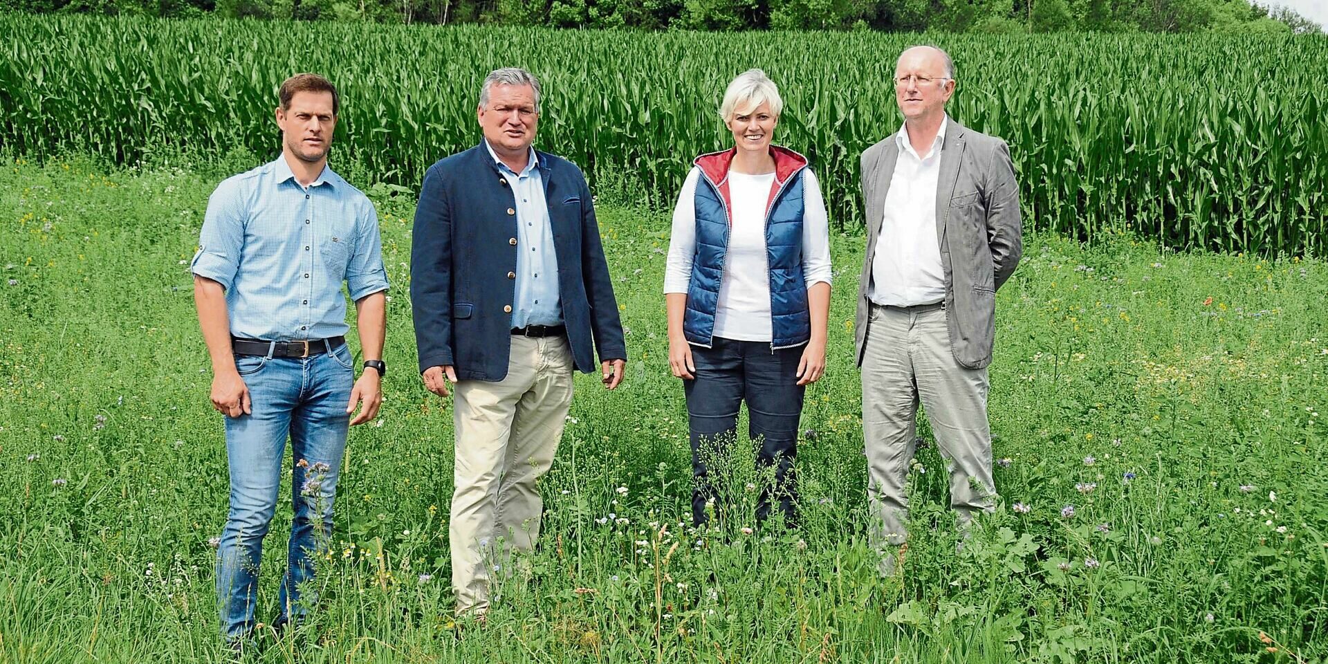 „Der weibliche Part hat da viel gebracht“, lobte Hans Laumer die Wildlebensraumberaterin Katharina Wals, die zwar für den ganzen Landkreis zuständig ist, wie Heribert Semmler betonte, aber in ihrem Wohnort Zandt natürlich besonders auf die Natur ein Augenmerk hat. Die Beratungstätigkeit geht dabei weit über Angebote von Fördermöglichkeiten hinaus, machen Laumer, Wals und Semmler klar. Es geht in erster Linie darum, Verständnis dafür zu wecken, warum entlang eines Baches zum Beispiel ein Altgrassaum bis zum Herbst stehenbleiben soll, wie mit einer Blühfläche bei Starkregen eine Abschwemmung von Mutterboden aus dem angrenzenden Maisfeld verhindert werden kann, oder welche Wildtiere durch Hecken geschützt werden können. Die Gemeinde Zandt achtet auch darauf, Mäharbeiten am Straßenrand auf das zur Verkehrssicherung notwendige Maß zu beschränken und den Mähtermin so spät wie möglich zu legen, erläutert Bürgermeister Laumer, der selbst auch Jungjägerausbilder ist. In Jagdvorsteher Andreas Brunner fand er einen Partner, der als praktizierender Landwirt aktiv Wildlebensräume gestaltet.